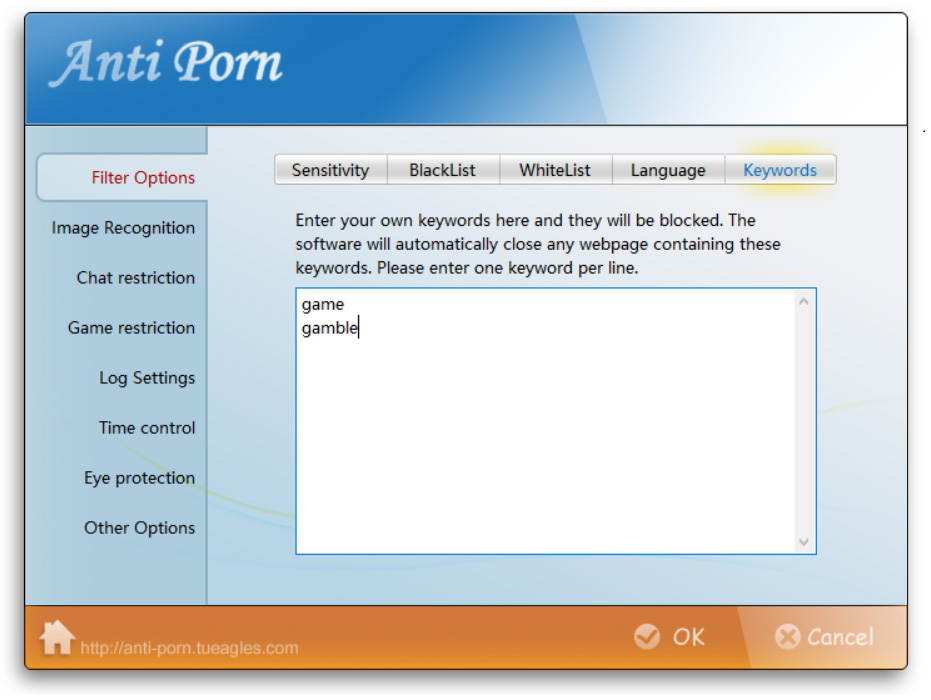 Once user-defined keywords appear in the content of the webpage, this webpage will be closed.