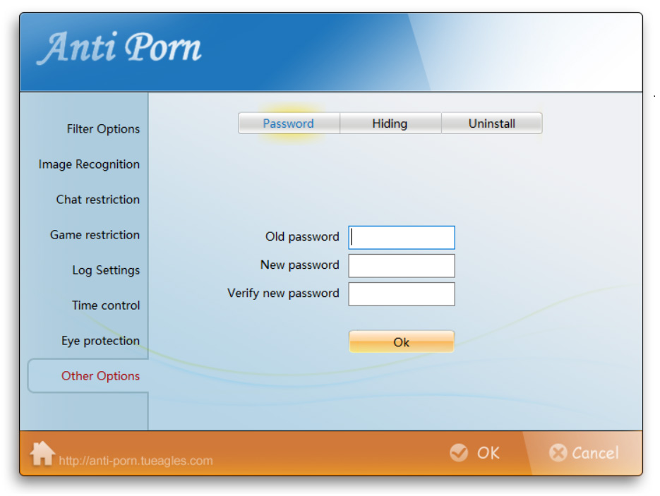 You can modify the password of the Anti-Porn parental control software here.